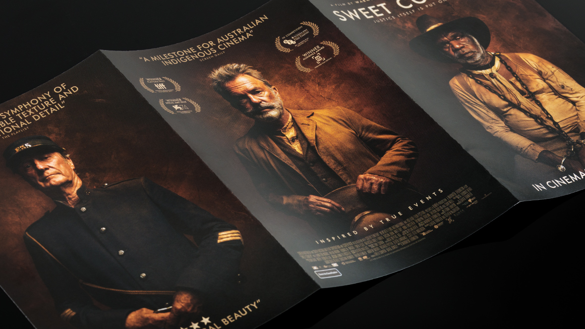 Carnival’s creative direction was informed by the existing character portraits masterfully photographed by Photoplay Film’s Michael Corridore, who shot a series of dark and emotive portraits of the key cast (Sam Neill, Bryan Brown and Hamilton Morris) against the simple, rough fabric. In order to get the most value from the marketing spend, Carnival devised an ensemble layout featuring the three main characters, that emphasised the relationships and motivations of the characters as well as the barren beauty of the bush setting.