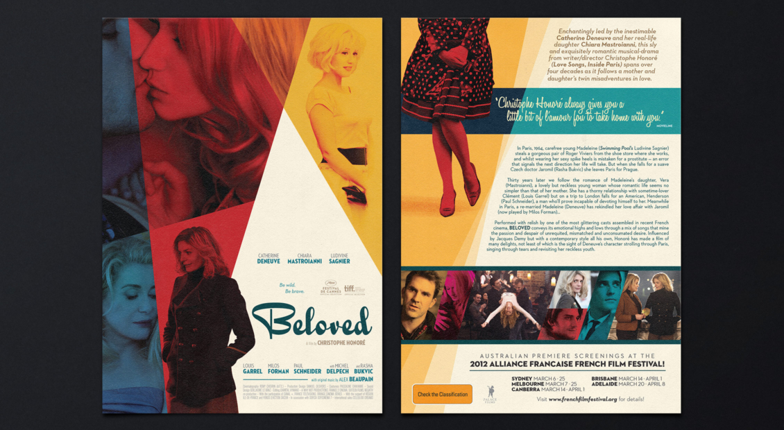 A common issue with marketing international films in Australia is the lack of resonance Australian audiences sometimes feel with the key art, given it’s often designed for a different demographic in its native country. This was the case with Christophe Honore’s film Beloved. The client felt that the key art wasn’t quite the right fit for a local audience and tasked Carnival with the brief of creating something that bolstered the appeal of the film for an educated art-house audience, whilst referencing that the film takes place over forty-odd years ago. Carnival’s re-design used stills from the film in a creative way, to elicit a tone of intrigue and sensuality whilst also feeling like a nod to romantic classics of the past.
