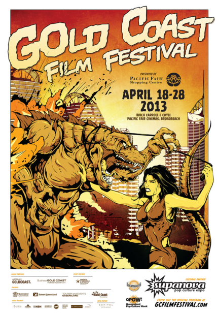 The initial brief from festival organisers in 2012 was to create a fun, accessible identity for the festival which had previously lacked a defined identity. The festival was closely aligned with the Supanova Pop Culture Expo and this association was sought to be leveraged. We began idea development and arrived at the idea of creating a hometown superheroine in the form of a kick-ass meter maid, designed to flip their image from being objectified to empowered. Working with Aisle6 and street artist Cam Scales, our meter maid heroine was brought to life for the 2012 poster. The 2013 poster was an extension of the fantasy themes with our meter maid fighting off a Godzilla-like monster.