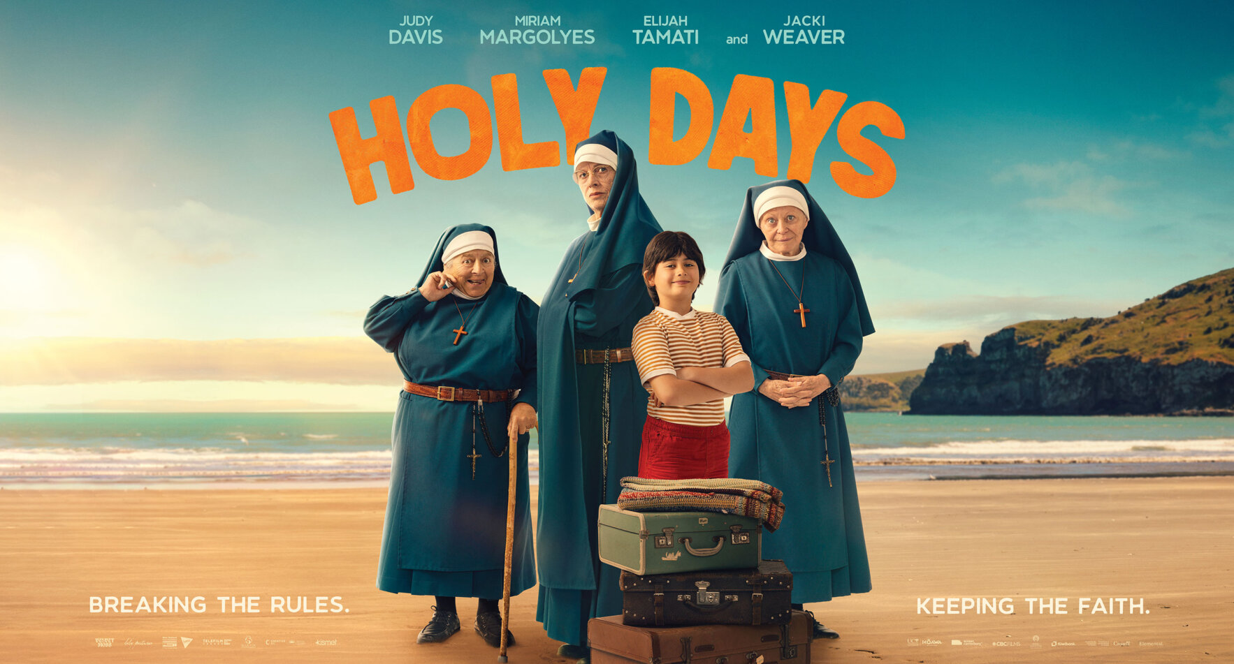 Holy Days is a film with a huge heart, bolstered by an irresistible cast: Judy Davis, Jacki Weaver, Miriam Margolyes, and breakout newcomer Elijah Tamati. Our job was to bottle that charm and chaos in a single image.