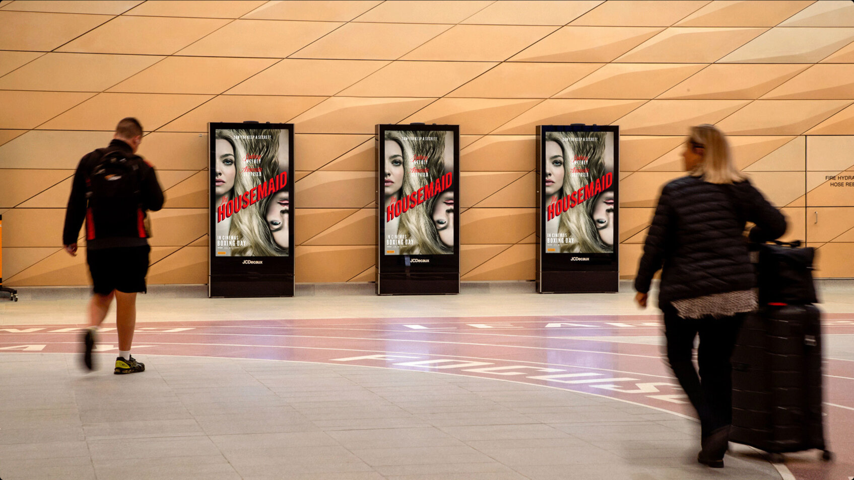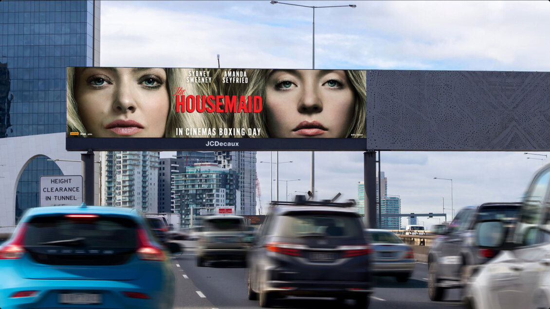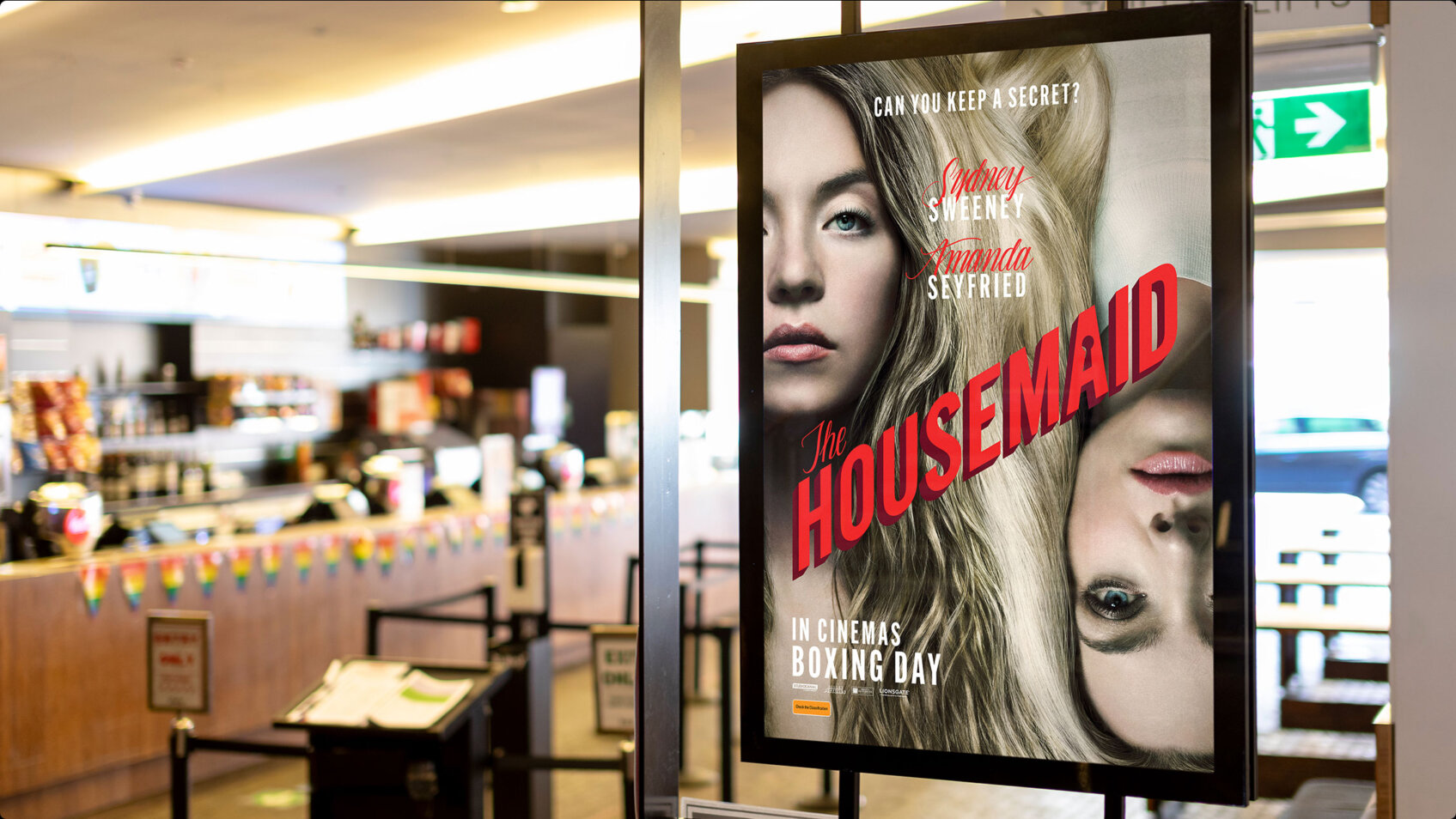 Carnival partnered with StudioCanal to roll out the Australian campaign for The Housemaid across one of the most contested release windows on the calendar. The campaign spanned a targeted digital presence across Daily Mail and Flicks, wide DOOH and motion poster placements in shopping centres nationwide, and extensive in-theatre FOH banners across cinema complexes nationwide.